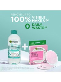 Micellar Cleansing Water comes in a generous 400ml format for up to 200 uses - based on 2ml per cotton pad. Pair with Garnier Micellar Reusable Pads to minimise daily consumer waste. All Garnier products globally are officially approved by Cruelty Free International under the Leaping Bunny programme, the leading organisation working to end animal testing, and the recognised Cruelty Free Gold Standard.