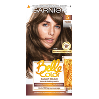 At Garnier, we believe in providing our consumers with an excellent at home hair dye. Garnier Belle Color radiant permanent dark brown hair dye allows you to dye your hair in the comfort of your home, giving you natural-looking rich brown hair colour results with up to 100% grey coverage. Belle Color Permanent at home hair dye protects nourishes and adds shine to your hair whilst it colours as the colour crème and nourishing conditioner are enriched with wheat germ oil.
