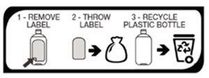 RECYCLING INSTRUCTIONS: Recyclable bottle + Recycled plastic bottle excluding cap, label & additives.